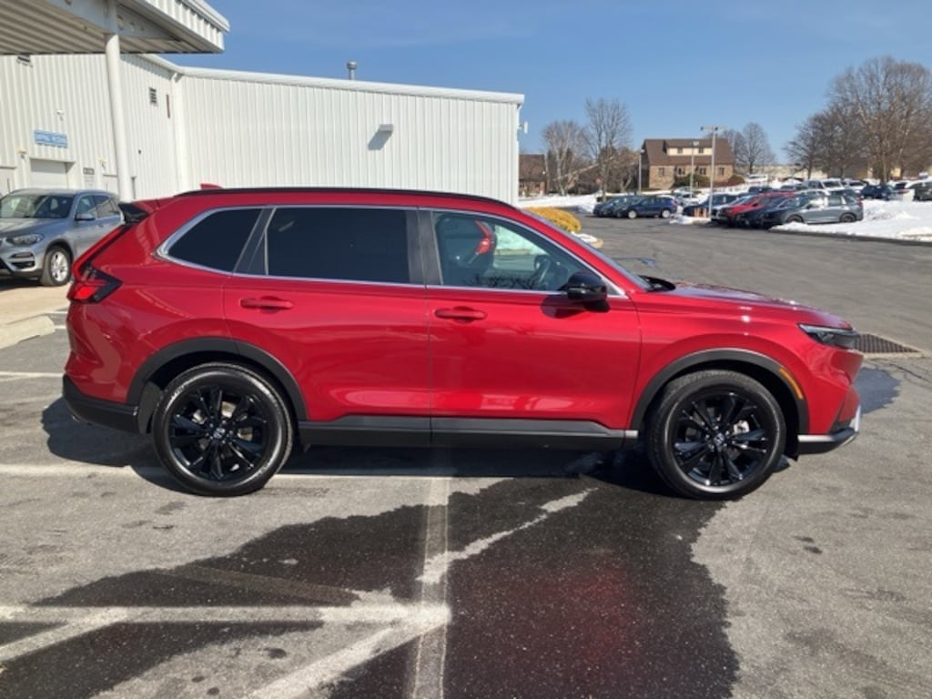 2025 HONDA CR-V HYBRID SPORT TOURING IN RADIANT RED WITH GRAY LEATHER INTERIOR. Clean CARFAX. CARFAX One-Owner. **MOONROOF**, **NAVIGATION!**, **REAR VIEW BACK-UP CAMERA!**, **BLIND SPOT TECHNOLOGY - NEVER WORRY WHEN CHANGING LANES AGAIN!!**, **BLUETOOTH HANDS-FREE CALLING!**, **4CYL - ALL THE POWER - Better MPG!**, **AWD - NEVER WORRY ABOUT THE WEATHER!**, **PUSH BUTTON START!**, **HEATED LEATHER SEATS**, Blind Spot Information (BSI) System warning, Brake assist, Electronic Stability Control, Exterior Parking Camera Rear, Heated front seats, Leather Seat Trim, Memory seat, Navigation system: Honda Satellite-Linked Navigation System, Power moonroof, Radio: Bose Premium Sound System w/Navigation, Steering wheel mounted audio controls, Traction control.